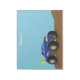 A notepad for boys with a racing cool blue monster truck with a lighting icon on the side, racing on the rocky terrain. For kids who love racing cars and vehicles.