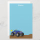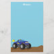 A stationery for boys with a racing cool blue monster truck with a lighting icon on the side, racing on the rocky terrain. For kids who love racing cars and vehicles.
