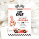 Racing Car Fast One Blue 1st Birthday Invitation