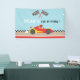 Personalised birthday party banner with a racing theme design! Design features a red sports race car with a little racer boy and a black and white chequered tiles race flag. Great for birthday boys who love race cars! Add your party message!