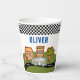 Racing Car Road House Custom Name Birthday Paper Cups. Join us for an unforgettable birthday party with a car racing theme - a simple car with your age number on a road with houses and trees. Your little racer will take the wheel and drive through the street. Come ready for a fun-filled day of games and treats! Add your name and age number.