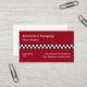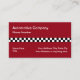 Automotive business cards design created with a classic racing black and white checkered pattern in the background and sleek modern design for the automobile services industry or racing theme.