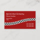 Automotive business cards design created with black and white chequered pattern in the background and sleek modern design for the automobile services industry or racing theme.