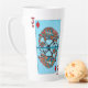 This Jack of Diamonds is a racing cyclist who also happens to be a gorgeous panther chameleon.  The image is from a large acrylic painting I did for a whimsical playing card series.  Later I took all the images from the paintings and used them to create an Animal Royalty Playing Card Deck, which I sell on Etsy.   (This was the second such deck; go to my Etsy store, Animal Playing Carts, to see the first one!). See if this determined little chameleon can help energise your day on this 17 oz large latte mug!