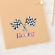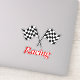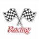 Crossed racing chequerboard winner / finish flags with retro red Racing text