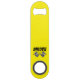 Bottle opener is shown in a bright yellow colour with a racing flag print.