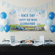 Make your little racer’s celebration unforgettable with these Race Car Blue Watercolor party bunting banners.