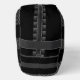 A crossed checker racing flags rendered as a chrome like applique on a carbon fiber style design print. The carbon fiber and black stripes look suits automotive, modern, and industrial tastes and the 3D simulation of the flags makes for a dynamic looking design.