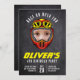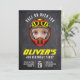 This fun birthday party invitation is perfect for your child's racing car-themed party. You can upload a photograph of them so it looks like they're wearing a racing helmet!