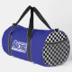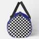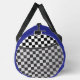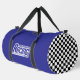 This large size duffel bag is shown in a solid color of blue with black accents.