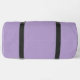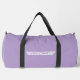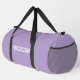 This large duffel bag is shown in a solid colour of lavender with black straps.