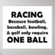 Racing! because football, baseball, bowling and golf only require one ball