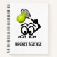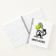 A funny tennis player graphic by artist/designer Charmaine Paulson on a notebook.