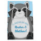 Racoon baby shower design is cute and sweet for a woodland animals theme baby shower and great for a boy with the blue background! The fun stuffed animal style cartoon is a great look for a new baby celebration!