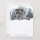 An elegant animal themed notecard featuring a watercolor painted baby racoon with fixated eyes against a teal blue watercolor wash background. The back of the card features a large-sized image of the animal.