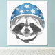 This design features a cute racoon wearing a vintage motorcycle helmet.