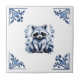 Racoon Delft Blue White Corners Woodland Animals Tile