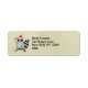 Address labels with a cute racoon wearing a red santa hat tangled up in some colourful christmas lights. Getting ready to decorate his home. Set on a tan background.