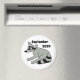 The magnet features a playful grey racoon, its fur detailed with soft shades of grey and white, sitting in the centre of the round, white background. The racoon’s black-ringed tail curls up slightly, and its bright eyes shine with curiosity. Above the racoon, in bold, elegant font, the words "September 2024" are written in a dark colour, possibly black, adding a touch of formality to the design. The clean white background makes the racoon and text stand out, creating a simple yet charming aesthetic.