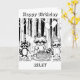 Birthday card with colouring page on the front. Colour me raccoons in a forest having a birthday party. Add child's name in the personalise area. Kid's birthday for boy or girl.