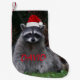 Racoon Wearing Red Santa Hat with Name Small Christmas Stocking