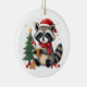 Racoon Wearing Santa Hat For Christmas Holiday Ceramic Tree Decoration