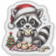 A charming racoon dressed in a Santa hat delights in munching on cookies, surrounded by a vibrant plate of treats and a cheerful Christmas tree. The festive atmosphere radiates holiday joy and a sense of playful celebration.