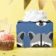 Bold and Simple Design of a Black, White and Grey Racoon with Sad Eyes.