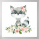 Racoon, Woodland Animals, Boho, Pink Flowers Poster