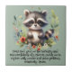 Enhance your child's room with this beautiful 20" square ceramic tile featuring an adorable racoon design on a blue background and a heartfelt Christian prayer. This unique and durable tile is perfect for adding a touch of inspiration and charm to any space. Dear God, give me the curiosity and resourcefulness of a racoon. Guide me to explore with wonder and solve problems creatively. Amen