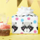 Racoon with pink and blue poke-a-dots wrapping paper. Cute for baby gifts.