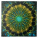 A radial foliage abstract with many fractally branching lines similar to the veins of leaves. The main colours are green, blue, yellow and black.