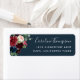 Chic floral return address labels frame your name and address with green eucalyptus foliage and watercolor flowers in blush pink, burgundy marsala and navy blue. Add your return address in white lettering on a rich navy blue background. Designed to match our Radiant Bloom event stationery collection.