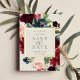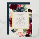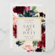 Our Radiant Bloom wedding save the date frames your wedding details with an elegant square border of lush watercolor foliage and flowers in blush pink, burgundy plum and dusty blue, with real gold foil trim on a soft cream ivory off-white background.