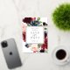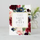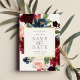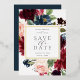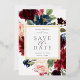 Our Radiant Bloom wedding save the date frames your wedding details with an elegant square border of lush watercolor foliage and flowers in blush pink, burgundy plum and dusty blue, with real gold foil trim on a crisp white background.