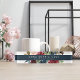 Elegant floral desk nameplate features two lines of custom text for your name and title or business name. Personalize with your details in modern white lettering on a navy blue stripe, bordered by jewel toned flowers and botanical foliage in shades of blush pink, burgundy plum, navy blue and rich green.
