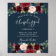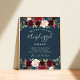 Planning an unplugged ceremony but not sure what wording to use to let your wedding guests know to put away their phones? This chic poster takes care of it for you in style. Elegant watercolor floral design features "welcome to our unplugged ceremony" in handwritten calligraphy and block typefaces with your names and custom message beneath, on a rich navy blue background. Shown with "please put away your phones and cameras until after the ceremony." Adorned with borders of watercolor jewel tone flowers and greenery that match our Radiant Bloom wedding collection.