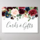 Designed to match our Radiant Bloom wedding collection, this elegant botanical sign lets guests know where to drop off their cards and gifts. Personalise with one line of custom text in calligraphy script lettering (shown with "Cards & Gifts"), framed by rich jewel toned watercolor flowers and green foliage.