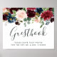 Designed to match our Radiant Bloom wedding collection, this elegant floral sign invites wedding guests to sign your guestbook. Personalize with two lines of custom text in calligraphy script and traditional serif lettering (shown with "Guestbook; please leave your wishes for the new Mr. and Mrs. [name]"), framed by lush watercolor jewel tone flowers and greenery.