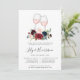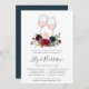 Elegant floral invitations for wine themed or wine tasting rehearsal dinners feature two clinking glasses of rose wine adorned with watercolor flowers in rich jewel tones that match our Radiant Bloom collection. Personalize with your rehearsal dinner details beneath in a chic mix of block, serif and calligraphy typefaces. Includes space for both the wedding ceremony rehearsal and dinner or celebration.