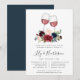 Elegant floral invitations for wine themed or wine tasting rehearsal dinners feature two clinking glasses of red wine adorned with watercolor flowers in rich jewel tones that match our Radiant Bloom collection. Personalise with your rehearsal dinner details beneath in a chic mix of block, serif and calligraphy typefaces. Includes space for both the wedding ceremony rehearsal and dinner or celebration.
