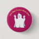 Radiant cute Trumpy ghost button. This lovely ghost is on burgundy background. Let's Make Trumpy Ghost Great can be personalised.