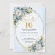 Radiant Dusty Blue Floral Sweet Sixteen Birthday Invitation