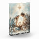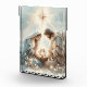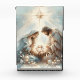 This serene Holy Family nativity design centers on a radiant newborn beneath a brilliant guiding star, surrounded by gentle celestial glow and soft watercolor light that evokes reverence and peaceful Christmas wonder. Mary and Joseph lean close in quiet devotion, their flowing robes painted in calming pastel blues and warm neutrals that create a tender, intimate moment of sacred stillness. Delicate shimmering accents, soft foliage, and luminous orbs frame the scene, blending traditional Christian symbolism with an elegant, modern watercolor style that feels timeless yet fresh for today’s seasonal décor trends. Ideal for anyone drawn to faith-filled imagery, tranquil holiday themes, or softly glowing devotional illustrations that celebrate the beauty of Christ’s birth, this design brings a warm sense of hope and holy night reflection. AI generated artwork.
