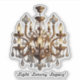 This striking image showcases an iconic chandelier, its intricate crystals and radiant lights meticulously detailed in fine lines. Bathed in golden hues, the chandelier embodies luxury and sophistication, creating a mesmerising interplay of light and shadow against a soft, light-coloured background.