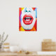 This vibrant artwork captures the essence of beauty and confidence, featuring a striking woman's face adorned with bold red lips that command attention. The use of vivid colours creates a dynamic backdrop, enhancing the allure of the subject and inviting viewers to explore the emotions conveyed through her expression.