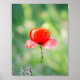 Add a splash of vibrant energy to your space with this striking macro photograph of a blooming red poppy. Standing tall against a dreamlike, blurred garden backdrop, this image captures the delicate "crinkled silk" texture of the petals and the vivid, iconic crimson hue that makes poppies a timeless favorite.