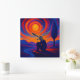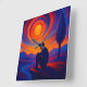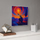 A captivating wall clock featuring radiant sun swirls in orange and red, contrasted with calm blue tones. Perfect for modern or artistic interiors.
