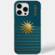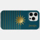 A bold composition of a gold sun over deep turquoise lined texture, evoking warmth and cosmic elegance. Perfect for phone cases, tech accessories, home decor, and lifestyle goods. Available for personalisation.