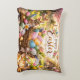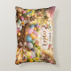 Radiant Sunrise Happy Easter accent pillow featuring a glowing cross, spring flowers, bunnies, and colorful eggs. A beautiful Christian Easter design celebrating faith and renewal.